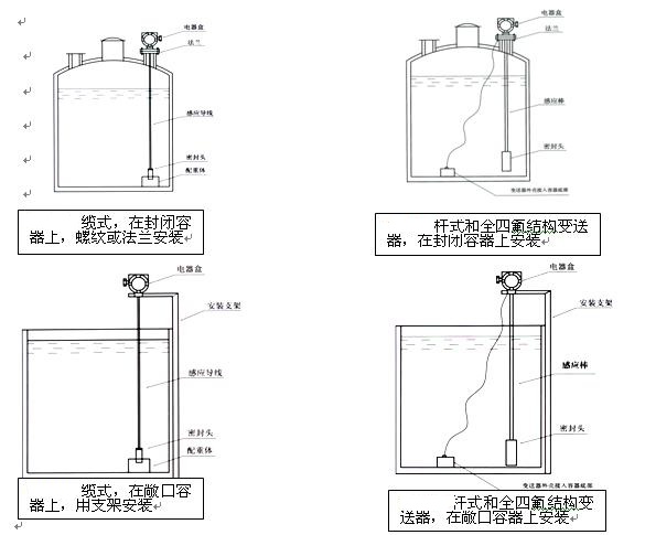 纜式和桿式液位變送器具有多種安裝固定方式,以適應(yīng)不同現(xiàn)場情況。當現(xiàn)場不能夠提供M20×1.5的內(nèi)螺紋或法蘭等工藝設(shè)施時,可選擇墻壁安裝式、水平管架式和垂直管架式等三種安裝方式可選擇,使您在現(xiàn)場安裝時得心應(yīng)手。(附圖)